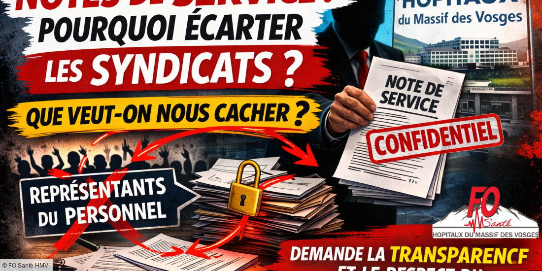 Depuis quelques jours, une dérive inquiétante semble s'installer au sein du Centre Hospitalier Intercommunal des Hôpitaux du Massif des Vosges : certaines notes de service seraient diffusées “à la tête du client”, en écartant purement et simplement les organisations syndicales représentatives.