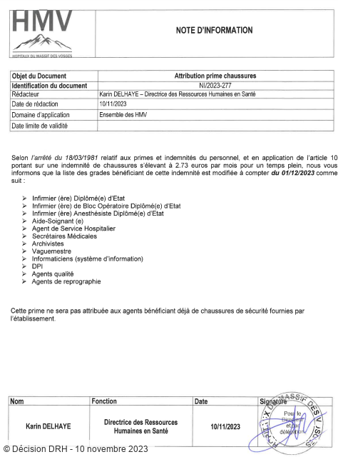 Aujourd'hui, Force Ouvrière Santé annonce fièrement que la lutte a porté ses fruits. Après des mois de négociations intenses, le syndicat a obtenu gain de cause, et la prime chaussure sera rétablie pour certains métiers dès le 1er décembre 2023, sont concernés les agents suivants: