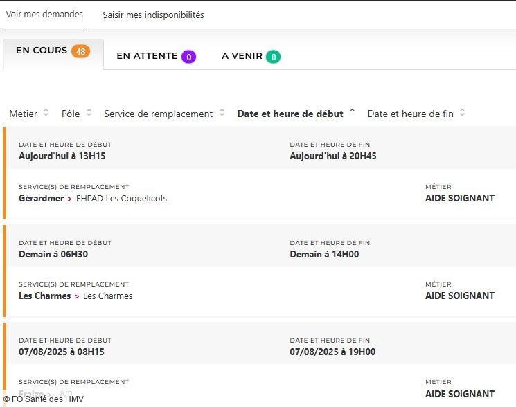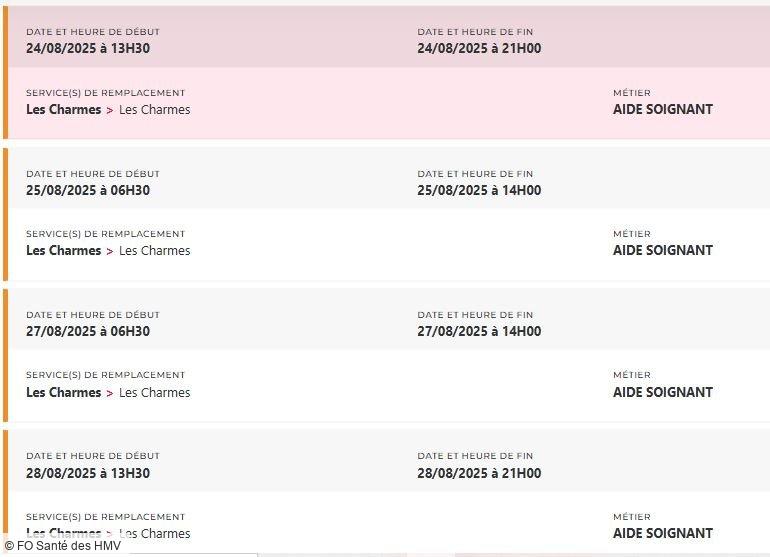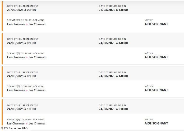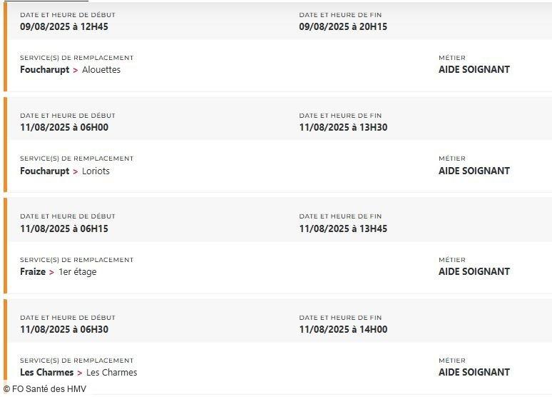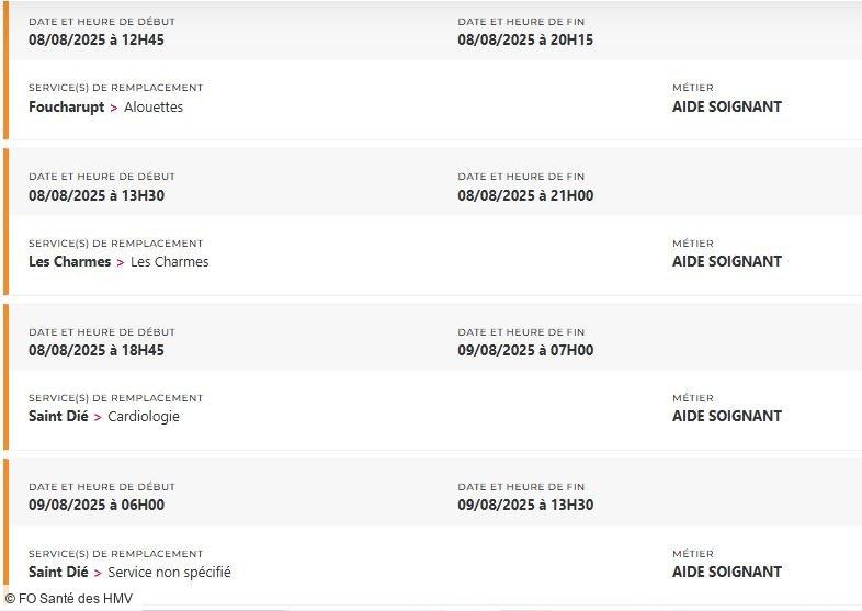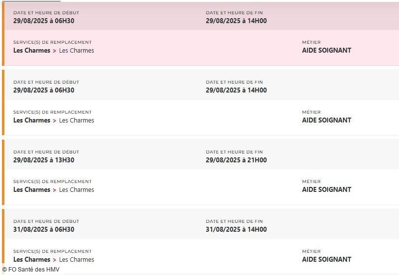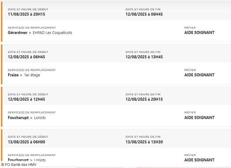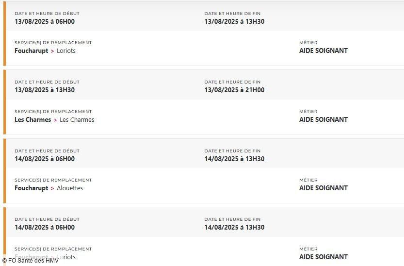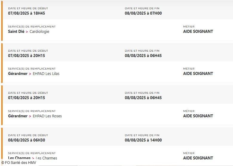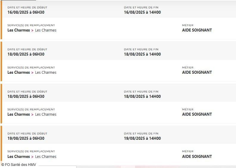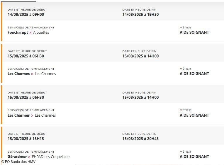 Depuis des mois, FO Santé des HMV alerte, interpelle, écrit, dialogue. Mais que faut-il de plus pour que la direction prenne la mesure de la situation ? Un hôpital ne peut pas tenir sur des soignants et des personnels en souffrance permanente, la preuve avec plus de 48 missions PERMUTEO à pouvoir en ce moment et uniquement pour les aides-soignants !