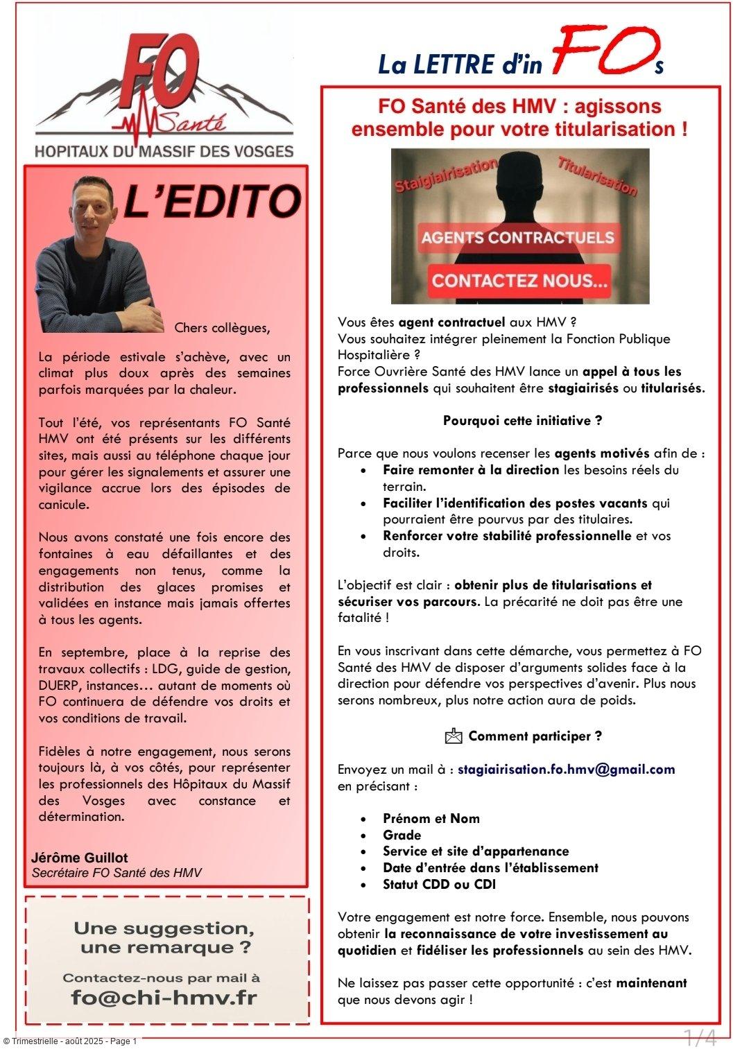 Téléchargement ICI: Trimestrielle FO Santé HMV - Août 2025 (format PDF - 705 Ko)