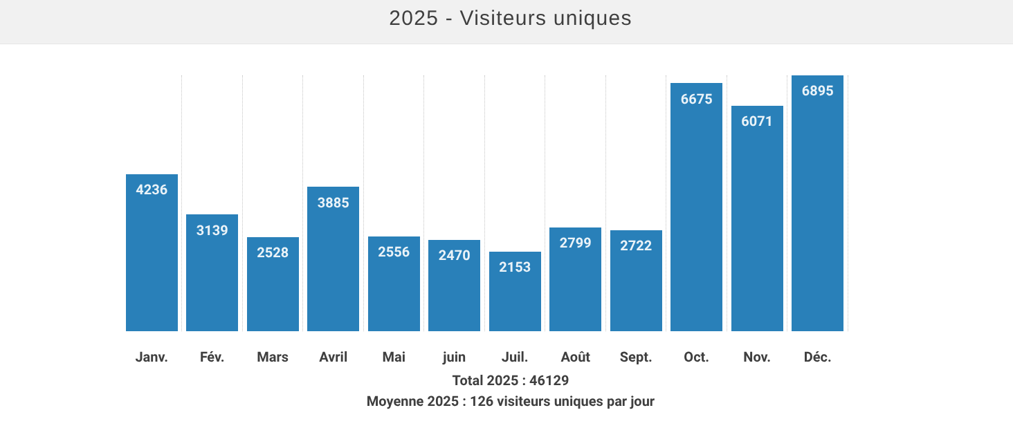 Cette progression est particulièrement marquée lors du dernier trimestre 2025, avec plus de 6 000 visiteurs uniques par mois en octobre, novembre et décembre — des chiffres qui dépassent largement les meilleurs mois de l'année précédente.