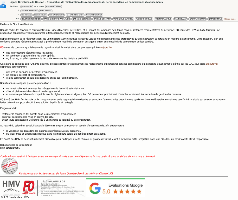 FO a même formalisé cette demande dans un mail complet adressé à la direction générale le 20 février 2026, en amont du dernier groupe de travail.