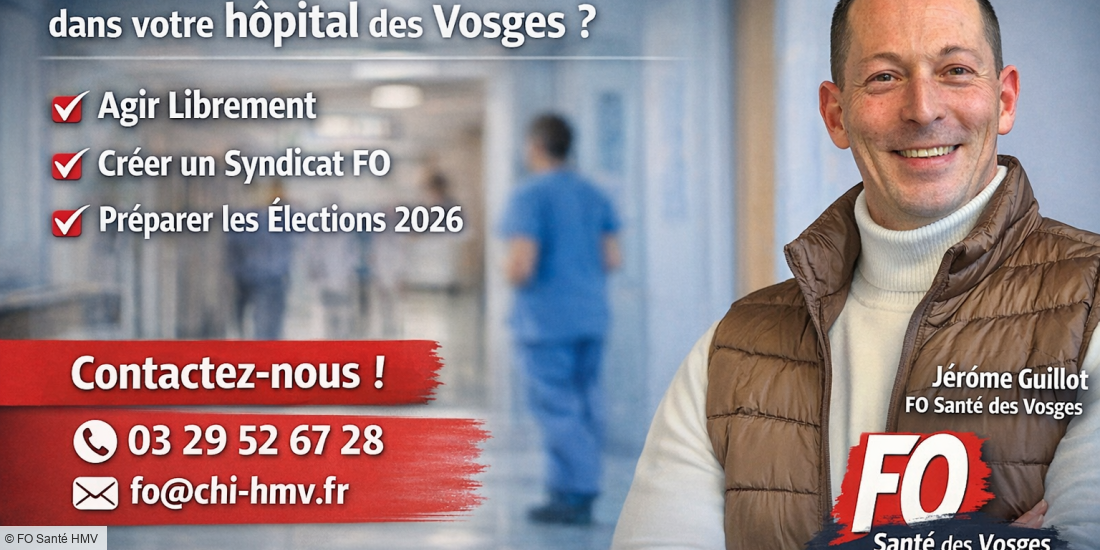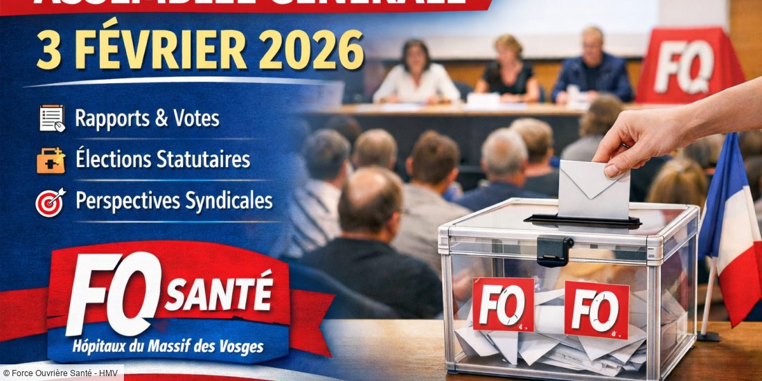 L'Assemblée générale ordinaire de FO Santé des Hôpitaux du Massif des Vosges se tient, aujourd'hui, mardi 3 février 2026 dès 9h au nouvel IFSI....
