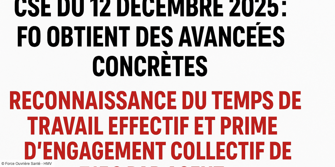 FO Santé HMV obtient de réelles avancées lors du CSE du 12 décembre 2025 : la reconnaissance officielle du temps de repas thérapeutique comme...