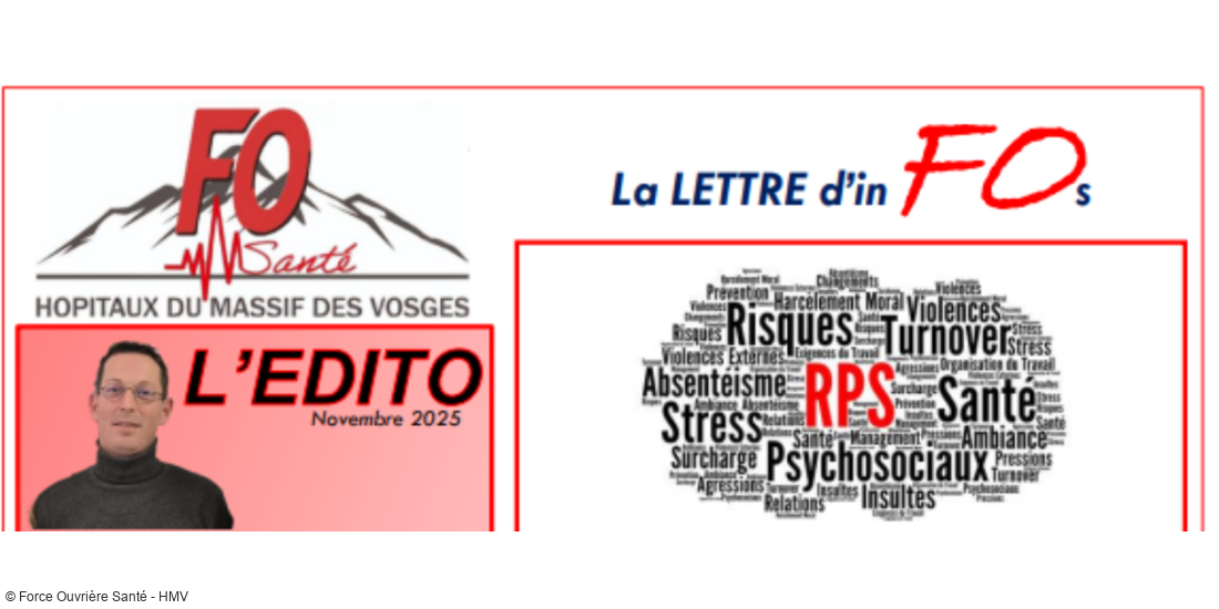 L'enquête sur les risques psychosociaux (RPS) lancée par FO Santé des Hôpitaux du Massif des Vosges est désormais clôturée depuis ce...